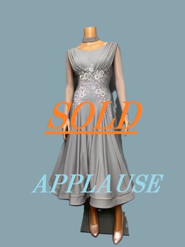 【新着】パーティードレス 社交ダンス ドレス スタンダード モダンドレス ライトグレー M ST-25-17 デモ・競技用ドレス 発表会衣装 パーティドレス ワンピース 舞台衣装