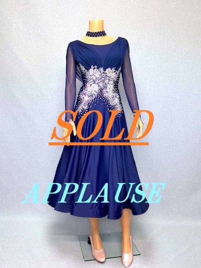 【再入荷】パーティードレス 社交ダンス ドレス スタンダード モダンドレス ネイビー M ST-25-24 デモ・競技用ドレス 発表会衣装 パーティドレス ワンピース 舞台衣装