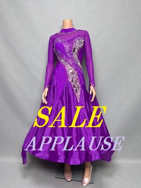 【新着】社交ダンス ドレス スタンダード モダンドレス ST-25-2 パープル(ハイネック) M デモ・競技用ドレス 発表会衣装 パーティドレス ワンピース 舞台衣装