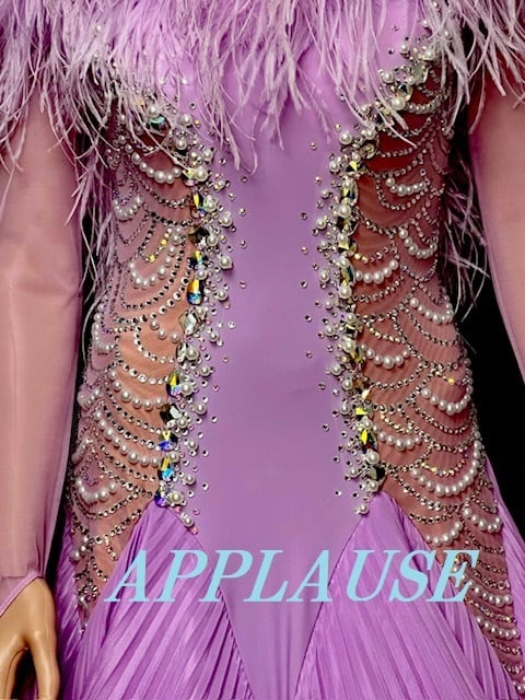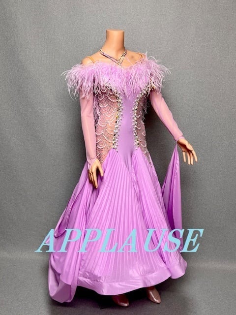 【新着】社交ダンス ドレス スタンダード モダンドレス ラベンダー(ファー) M ST-25-13 デモ・競技用ドレス 発表会衣装 パーティドレス ワンピース 舞台衣装