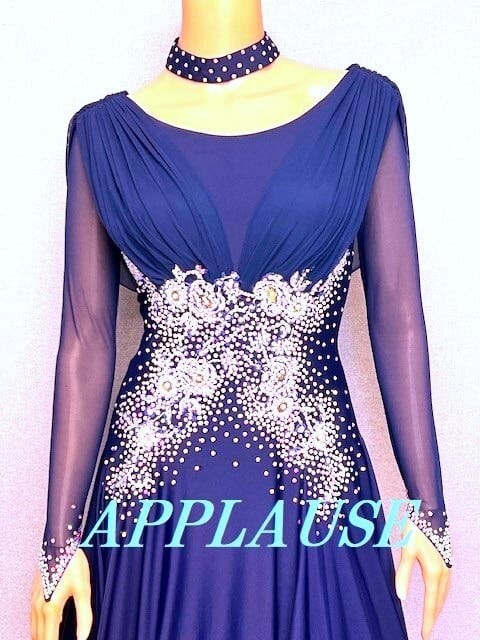 【再入荷】パーティードレス 社交ダンス ドレス スタンダード モダンドレス ネイビー M ST-25-24 デモ・競技用ドレス 発表会衣装 パーティドレス ワンピース 舞台衣装