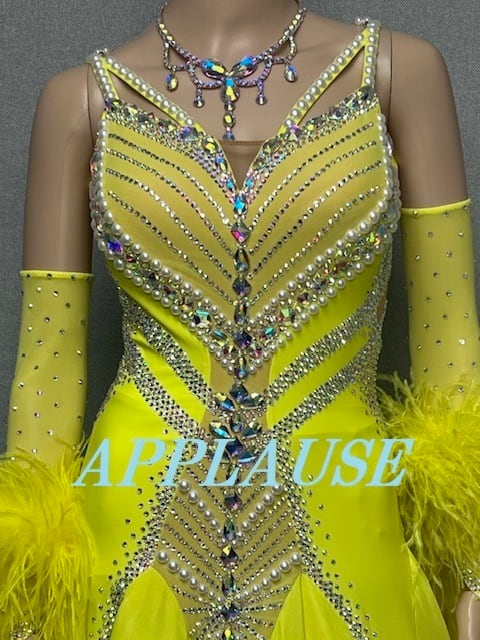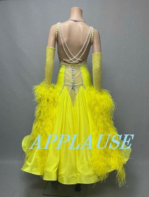 【新着】社交ダンス ドレス スタンダード モダンドレス レモンイエロー S~M ST-25-18 デモ・競技用ドレス 発表会衣装 パーティドレス ワンピース 舞台衣装