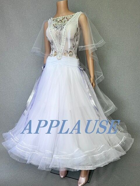 - 社交ダンス ドレス スタンダード モダンドレス ホワイト(ケープ) M ST-22-20 デモ・競技用ドレス 発表会 衣装 パーティドレス ワンピース 舞台衣装
