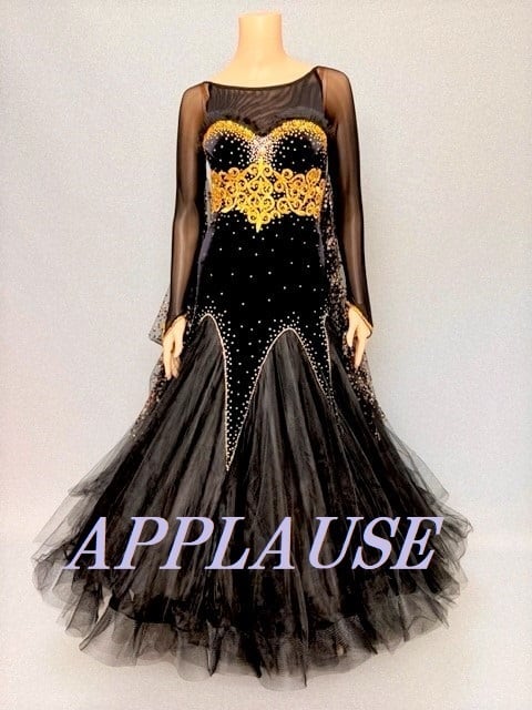 社交ダンス ドレス スタンダード モダンドレス ブラックベロア M~L ST-22-30 デモ・競技用ドレス 発表会衣装 パーティドレス ワンピース 舞台衣装
