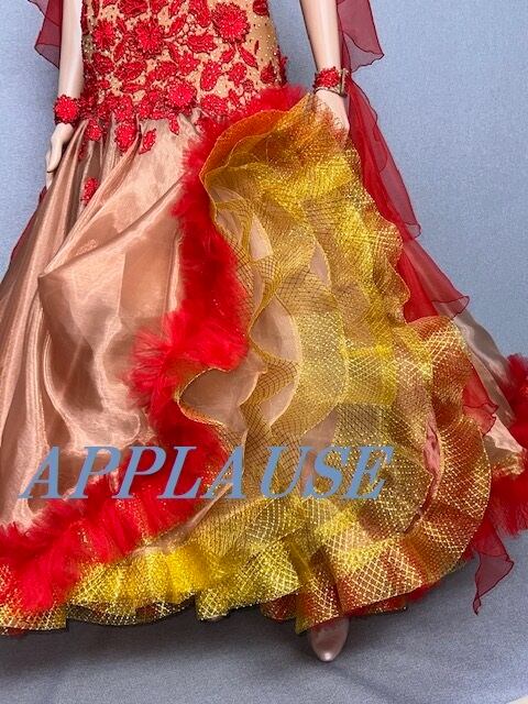 【新着】社交ダンス ドレス スタンダード モダンドレス シャイニーブラウン&レッド M ST-22-42 デモ・競技用ドレス 発表会衣装 パーティドレス ワンピース 舞台衣装