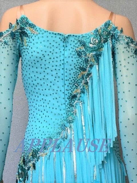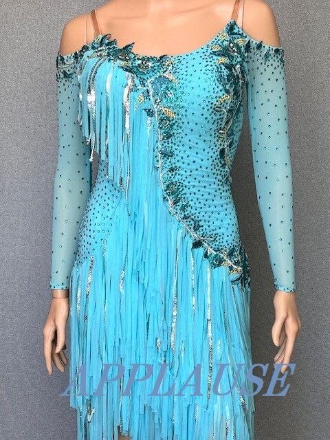 【新着】社交ダンス ドレス ラテンドレス ホリゾンブルー M~L LA-23-7 デモ・競技用ドレス 発表会衣装 パーティドレス ワンピース 舞台衣装
