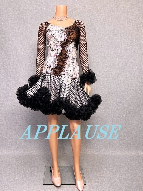 【新着】社交ダンス ドレス ラテンドレス ブラック M LA-24-1 デモ・競技用ドレス 発表会衣装 パーティドレス ワンピース 舞台衣装